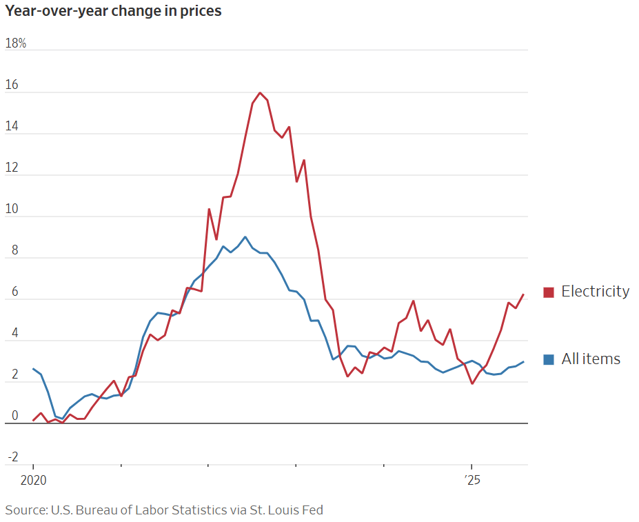 The knock-on effect of all this data center spend? They consume a significant amount of power and are scaling at a faster pace than North America’s power generation infrastructure. While all this spend positions the likes of OpenAI and Anthropic to dominate the global AI arms race, the cost is being borne by American families in the form of rising electricity prices, which have surged since the start of the year. So where does this leave us? It’s a matter of basic economics. We either need to massively invest in power generation to boost supply, or chip efficiency needs to improve to shift the demand curve to the left.